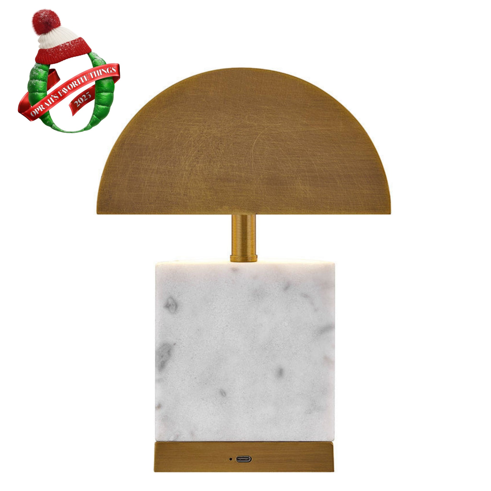 A plated brass shade and detailing mixes nicely with a marble feature on the body to create classic chic. It’s portable and rechargeable, too! Because this lamp has a flat back, we recommend using it in a bookshelf!